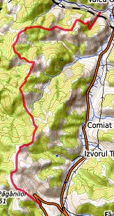 Alternative: Kurz nach Passieren des Vf. Viscolul zweigt ein mit dem roten Kreuz markierter Weg nach W ab - dieser Markierung folgen bis zum Vf. lui Alexandru (hier stehen Schweizer Eisenbahnwagen auf dem Berg ?!?!) - kurz danach ohne Markierung links abwärts auf Feldwegen nach Potiond (Abholung durch Privattaxi problemlos möglich, evtl. sogar Übernachtung?)