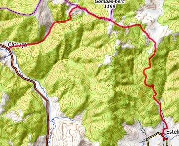 Catrusa - am Gasthaus in das Seitental Richtung O - an der Talgabelung nach etwa 3 km nach rechts hinauf auf die Hochweide - nach rechts über die Hochweiden Hauptrichtung O / OSO - auf dem Südrücken des Vf. Gombas treffen wir auf die Markierung rotes Band zum Pasul Carpineni - hier nach rechts, Markierung rotes Kreuz und roter Punkt - rechts abwärts nach Estelnic (Übernachtung?, Privattaxi?)