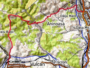 Petrosani - am Kreisverkehr bei den Supermärkten Carrefour und Penny nach W über die Bahn - nach links - zweite Str. nach rechts, Str. Ecaterina Teodoroiu - erste Str. nach links - vierte Str. nach rechts - Str. Aurel Vlaicu queren in die Str. Circa Pompieri, auf ihr Richtung N bis zur Brücke - nach links über den Fluss - Richtung SW - nach 300 m nach rechts in die Str. Sirenei - auf dieser Straße in Hauptrichtung W bis SW auf Fahrwegen nach Dalja Marae und weiter auf Feldwegen nach Aninoasa - das Tal queren - Str. Cocosvar Richtung W - nach etwa 650 auf Wegspuren nach rechts hoch auf die Weide - hier nach links und über die Weideflächen auf dem Bergkamm Richtung W/NW - nach etwas mehr als 2 km nach links Richtung S und abwärts nach Wolkersdorf/Vulcan (Übernachtung, Bahnstation, Bushaltestelle)