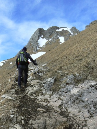 Strahlender Sonnenschein und Föhn ist angesagt. Also auf ins Allgäu: Der Südanstieg auf den Aggenstein ist weitgehend schneefrei, er ist auch im Winter die meiste Zeit begehbar. Vom Parkplatz an der Enge an der Straße Pfronten - Grän sind es nur etwa 2 Stunden zur Bad Kissinger Hütte und maximal eine weitere Stunde zum lohnenden Aussichtsgipfel am Alpenrand. Hier einige Eindrücke: