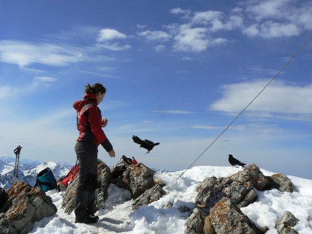 Die Gämse lässt sich nicht aus der Ruhe bringen Auf dem Gipfel! Zugspitzblick