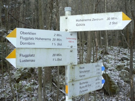 Die Vorarlberger Wegweisung ist noch besser als die Schweizer! Eis-Wasserfall Der alte Weg durch den fürstlich Waldburg-Zeilschen Wald