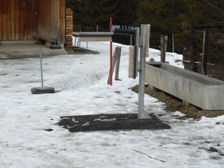 Liechtensteiner Kuh-Waschanlage im Schnee Walserdorf Steg bei Malbun-Triesnberg