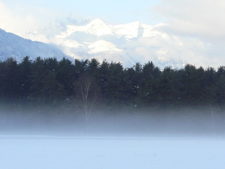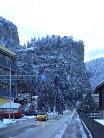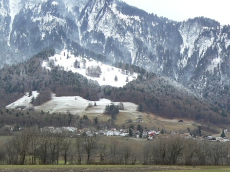 Oh je, fiel mir das Aufstehen schwer. Der schönsten Frau von Malbun, Steg, Triesenberg, ja von ganz Liechtenstein und Luzern auch. Wir frühstücken gemeinsam einige Stunden und reden miteinander ohne Ende. Draußen stürmt und regnet es, mit Schneeflocken vermischt. Wir machen einen Test-Spaziergang, den wir nach einer halben Stunde völlig durchnässt abbrechen. Ich trockne mein Zeug im Gasthaus, verabschiede mich von meiner Silvester-Neujahrs-Traumfrau und fahre mit dem Bus durch den Tunnel nach Triesenberg und weiter im strömenden Regen bis Vaduz, wo ich in den Bus nach Balzers umsteige. Zu Fuß gehe ich, jetzt wieder auf dem alten Weg, über den St. Luzisteig mit seinem schönen Bestand alter Bäume im nachlassenden Regen hinunter nach Maienfeld, der Stadt des Via-Mala-Romanciers John Knittel und der Heidi-Schriftstellerin Johanna Spyri. Leider ist das verratzte Zimmer im Gasthaus zum Ochsen eine Enttäuschung. Aber ohne die schönste Frau kann ich jetzt in Ruhe per Mobiltelefon und SMS meine Neujahrswünsche erledigen.