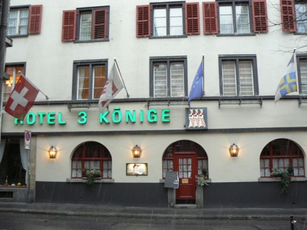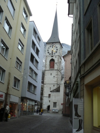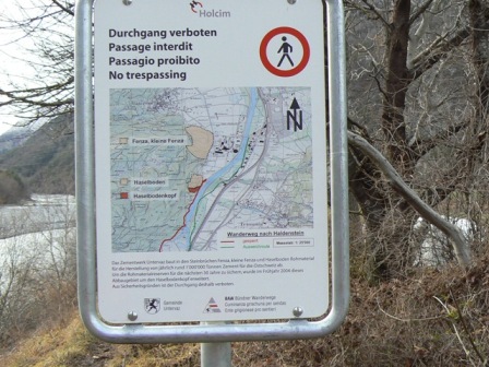 Draußen regnet es kräftig. In den Bergen hat es weit herunter geschneit. Es stürmt immer noch. Aber das Frühstück im Ochsen ist hervorragend. Ein Alp-Öhi sitzt schon beim Frühschoppen und wünscht mir, dass ich keine "Bladern" kriege. Danke! Auf dem alten Pardellerweg gehe ich aus dem Städtchen hinaus, durch die von Mauern eingesäumten Weinberge. Wegen des schlechten Wetters kürze ich ab, lasse die Weinorte Jenins und Malans aus - was mir im Falle von Malans sehr schwer fällt, denn da gibt es ein außergewöhnlich gutes Gasthaus zum Ochsen! Teilweise querfeldein gehe ich zum Bahnhof Lanquart, verpasse die Rheinbrücke und bleibe auf dem rechtsseitigen Rheinuferdamm, leider begleitet vom Höllenlärm der parallel verlaufenden Autobahn, garniert mit Eisenbahn und Rauschen des Flusses. Dafür hat der Regen aufgehört. Auf der Höhe von Zizers kann ich auf der Ölleitung Genau - Ingolstadt, auf der ein Fußgängersteg angebracht ist, auf das linke Ufer wechseln, wo der Lärm geringer ist, dafür aber Industrieanlagen das Auge beleidigen. Und 2 km nach der Straßenbrücke kommt plötzlich ein Verbotsschild. Ich soll 2 km zurückgehen und auf das rechte Ufer zurückwechseln, weil eine Zementfabrik, an der Calanda einen Steinbruch erweitert. Macht also 4 km umsonst. Nicht mit mir! Ich überwinde alle Sperren und Zäune, balanciere über die Felsblöcke im Steinbruch, finde auf der anderen Seite wieder ein Loch im Zaun und lande auf einem schönen Weg, der einige Meter über dem Rhein in die Felsen gehauen und gut versichert ist. Und in Haldenstein kocht mir der Wirt im Gasthaus Calanda eine gute Suppe, so dass ich mich wohlgestärkt auf die letzten Kilometer nach Chur, der Hauptstadt Graubündens, der ältesten Stadt nördlich der Alpen, machen kann. Hier erweist sich das Hotel Drei Könige als perfekte Herberge. Pizokels und Bündner Volksmusik passen dazu.