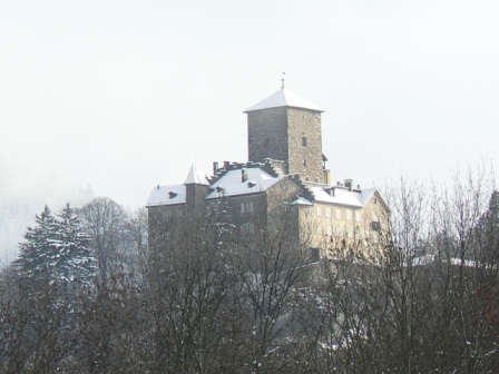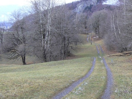 Der alte Weg Hinterrhein, darüber Schloss Rhäzüns Wenn das im Tiefschnee nur ginge ...