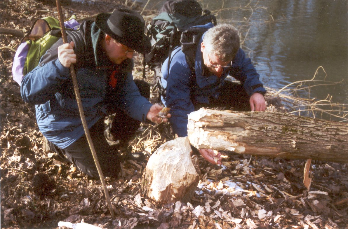 Noch sitzt der Ärger über riesige, Mondkrater ähnlichen Baustellen, ein Flächen fressendes Industriegebiet, ein unsensible Umgehungsstraße und sinnlose Alibiausgleichspflanzungen am Fluss in den Knochen, so kommt nach dem großen Sägewerk direkt an der Markungsgrenze zu Giengen ein wahres Naturparadies. Es bleibt nichts anderes übrig als uns durch den amphibischen Auenurwald, nachdem die begehbaren Wege aufgehört haben, durchzukämpfen. Auf Baumstämmen überqueren wir Altwasser. Natürlich ist auch hier der Biber am Werk. Und das alles in Sichtweite der hohen Autobahnbrücke. Wer jetzt noch nicht müde ist, kann die Irpfelhöhle ganz in der Nähe aufsuchen. Zwischen Wacholderheide und Industriegebiet nähern wir uns Giengen. Wir lieben zwar auch die Steifftiere, trotzdem zwingt uns die Fabrik, einen Umweg zu machen. Vergeblich suchen wir nach einem geöffneten Gasthaus, ein Schlüsselbier hätte es auch schon getan, doch überall stehen wir vor verschlossenen Türen. Ein bißchen mehr Gastlichkeit hätten wir von der alten Reichstadt mit ihren vielen schönen Häusern schon erwartet. So schön der Weg zwischen Brenz und Stadtmauer auch sein mag, der Fluß selbst ist zum großen Teil im fünf Meter hohen Betongefängnis eingesperrt. Die Häuslesbauer am südöstlichen Stadtrand werden sich nach Fertigstellung ihrer Neubauten wundern, wenn sie des öfteren mit ihren Füßen im Wasser stehen. Schon jetzt müssen die Baustellen mit Pumpen und Rohrleitungen trocken gehalten werden. So nah baut man nicht am Wasser!