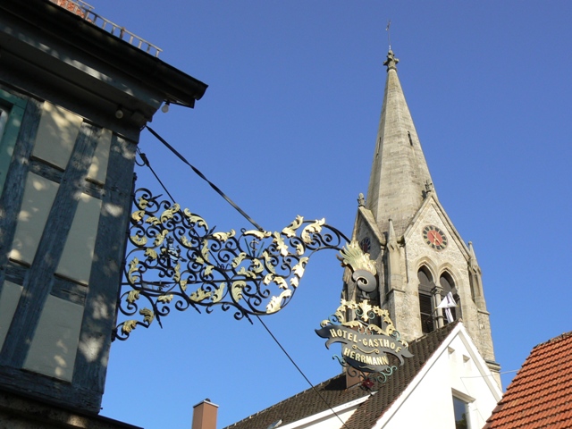 Auf dem alten Heuweg geht es nach Münsingen hinein Gasthof Herrmann, unser Standquartier, eine lukullische Oase