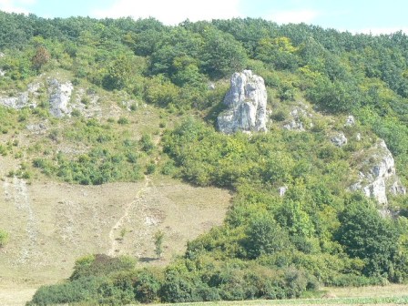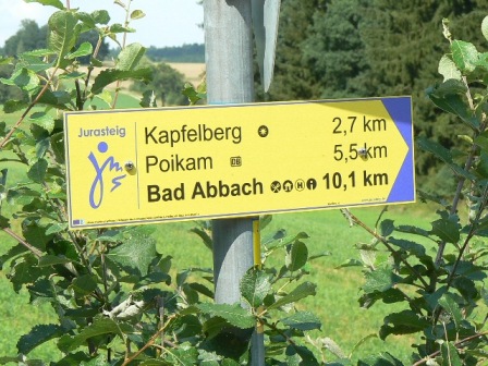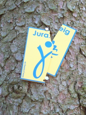 Anmerkungen zum Jurasteig: Der Weg ist sehr schön geführt, beinhaltet aber einige heftige Anstiege. Er ist kurzweilig und meist sehr gut markiert. Leider sind die Jurasteig-Markierungen zum Teil Saboteuren zum Opfer gefallen. Es sind keine Dumme-Jungen-Streiche oder stumpfsinnige Vandalismus-Zerstörungen. Es wurden ganz gezielt an sehr schwierig zu orientierenden Abzweigungen sämtliche Markierungen entfernt, so dass nur der Kompass oder die genaue Untersuchung der Bäume nach Alu-Nägeln weiterhelfen konnte. So geschehen mehrfach in den Wäldern nördlich von Herrnsaal. Zusätzlich hat hier ein Groß-Agrarier sämtliche Graswege inklusive Jurasteig umgepflügt, so dass wir hier eine eigene Wegführung finden mussten. Auch zwischen Bad Abbach und Matting fehlen an einer entscheidenden Abzweigung im Wald sämtliche Jurasteig-Markierungen. Hier kann man sich aber mit den an den Bäumen aufgemalten Waldverein-Markierungen behelfen (siehe Wegbeschreibung).
