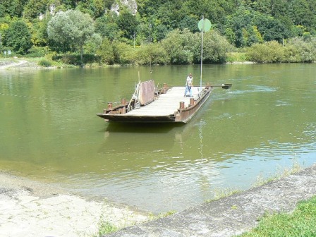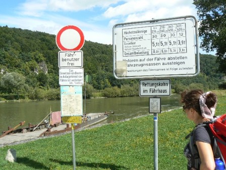 Ein Handwerker nimmt uns mit nach Irlbach, da im August entgegen der bayerischen Fahrplaninformation doch kein Bus fährt. Mangels Feld-, Rad- oder Wanderweg müssen wir auf der Straße bis zur Donaufähre von Stephansposching gehen, die uns für 0,50 € nach Mariaposching bringt, wo der Donaudammweg über viele Kilometer angenehm nach Deggendorf führt.