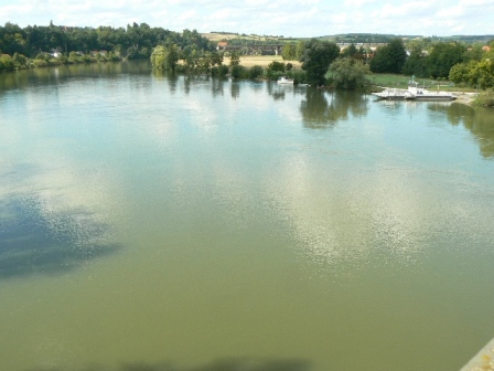 Wir queren die Hauptstraße, kurz rechts und gleich wieder links, unter der Autobahn durch, bis zur Alten Donau, hier links und auf diesem Weg am Naturschutzgebiet Gmünder Au (Lehrpfad mit Infotafeln "Donau im Wandel) entlang der Geländestufe teils auf Gras, teils auf Asphalt oder Schotter in südöstlicher Richtung bis Stadldorf. Vor dem Ort kurz rechts, dann links, den nächsten Weg wieder rechts und nun nach links auf den Grasweg unterhalb der Geländestufe, später oberhalb, bis kurz vor Niederachdorf, wo wir die Donau erreichen. Wir können nun einige Meter auf dem Donaudamm gehen, müssen aber exakt am Donau-Kilometerstein 2344 runter vom Damm, den Asphaltweg am Dammfuß queren und Niederachdorf auf dem Schotterweg im Süden umgehen. An der Einmündung in den nächsten Asphalt-Querweg kurz rechts, dann links in den Feldweg, der parallel zum Graben Richtung SO führt (Verbotsschild der Wasser- und Schifffahrtsverwaltung missachten!). Bei der nächsten Wegkreuzung wechseln wir auf die andere Grabenseite und gelangen so bei Pondorf wieder zur Donau. Nun folgen wir dem Donaudamm, bis wir exakt linker Hand (im NO) die Kirche von Oberzeitldorn sehen. wir gehen auf dem nächsten Feldweg links nach Oberzeitldorn hinein, hier die erste Straße (Birkenstraße) rechts und nun immer geradeaus am Baggergraben entlang bis zum Sportgelände von Kirchroth; hier links in den Ort hinein und immer geradeaus zu unserer Mittagseinkehr im *Gasthaus zur Lacke, Dekan-Seitz-Straße 8, 09428 328 (Essen gut zu günstigem Preis, sehr freundliche Bedienung, sauber und gediegenen). Zur mittäglichen Siesta gehen wir zurück zum Sportgelände, wo wir am Dammweg schon Wegweiser und die grüne Wanderweg-Markierung 2 finden, der wir bis Straubing folgen können. Lange gehen wir am Damm entlang eines Grabens, bis wir nach Kößnach zum großen Altwasser Oberauer Schleife kommen. Wir halten die Südrichtung ein, Straubing grüßt jetzt schon ganz nah. Auf der Höhe der Wallfahrtskirche von Sossau (exakt östlich) führt der Weg auf die Straße, aber man kann auf dem schmalen Grasstreifen auf der gegenüberliegenden Straßenseite ungefährlicher wandern. Nach der nächsten Feldweg-Einmündung beginnt ein asphaltierter Rad- und Fußweg, auf dem wir auf der Kagerser Brücke die Schleuse überqueren. Zwischen Schleuse und Donau führt der Weg 2 links hinunter auf den Leitdamm und schließlich gut markiert durch eine schöne Allee direkt zur Schlossbrücke. Die Altstadt von Straubing betreten wir beim ehemaligen Herzogsschloss. Straubing ist eine Stadtbesichtigung und eine Rast wert, zumal wir im **Hotel Villa im Stadtpark gegenüber dem Bahnhof ein traumhaft schönes Hotel mit freundlichster Bedienung und Feinschmecker-Restaurant finden. Auch das angeschlossene Restaurant Il Tomato genügt höchsten Ansprüchen. Hier ist vorherige Platzreservierung sinnvoll. Bisher bestes Frühstück an der Donau.