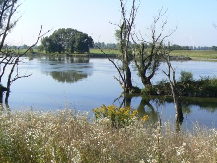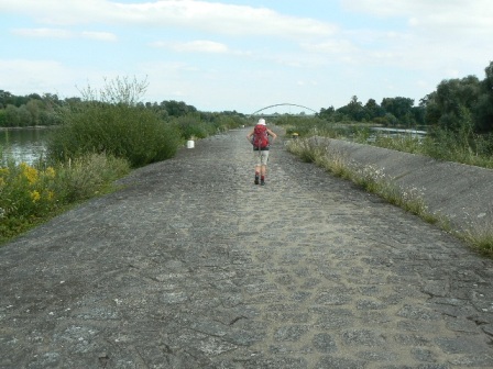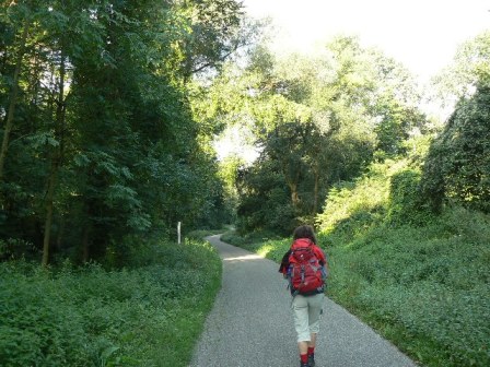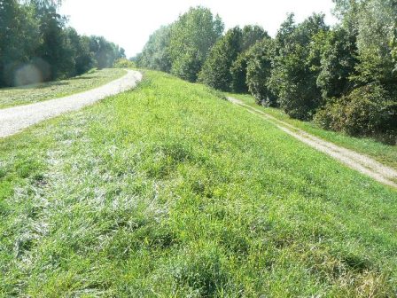 Markierter ostbayerischer Wanderweg vor Straubing (Wege Nr. 2 und Nr. 6) Auf dem Damm zwischen Alter Donau und Donau