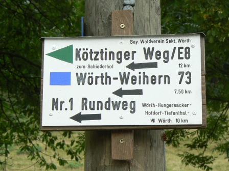Anmerkungen zum E 8: Dieser Europäische Fernwanderweg ist hier abwechslungsreich geführt und gut markiert. In Sinzing wurde der E 8 verlegt. Wir haben den alten Weg benutzt, der wohl auf der Straße Richtung Regensburg führt, aber eindeutig und kurz ist. Vielleicht kann man auch der neuen E8-Markierung ohne große Umwege folgen?