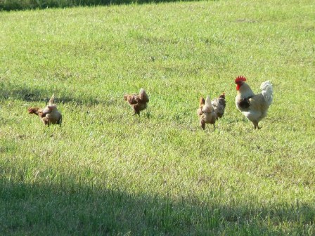 Glückliche Hühner bei Stadldorf Da hat ein Biber was verloren