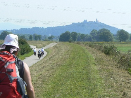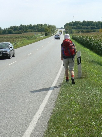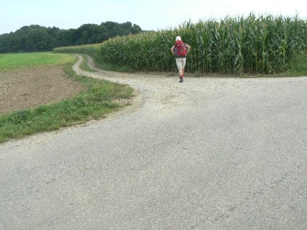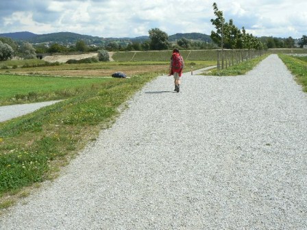 Durch die Donau-Aue in die Gäuboden-Hauptstadt und weiter nach Bogen : Der Höhepunkt gleich am Anfang: Geologisch, botanisch und kulturhistorisch ist der Bogenberg mit seinen wunder-/wanderbaren, bestens gepflegten Wanderwegen ein wahres Wanderparadies. Dann über die Donau, ganz normale niederbayerische Kulturlandschaft. Aber ein Wanderer Alptraum: Die amtliche Karte ist nicht zuverlässig. Feld- und Waldwege gibt es nicht mehr – zugewachsen, ein Wegenetz ist nicht vorhanden. Lange Abschnitte verlaufen (wie übrigens öfters an Straßenneubaustrecken in Ostbayern) auf verkehrsreichen Auto-Rennstrecken ohne Geh- oder Radweg. Quartiere und Einkehrmöglichkeiten fehlen oder sind von miserabler Qualität. Deshalb werden wir die Etappe nach dem Bogenberg völlig umplanen und die neue Trasse im Herbst überprüfen.