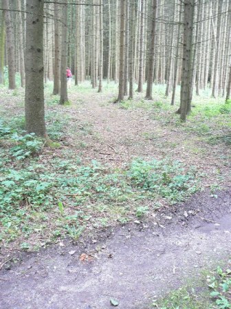 Hier an der Waldecke geht es rein und dann runter ins Saaler Tal Jurasteig-Sabotage