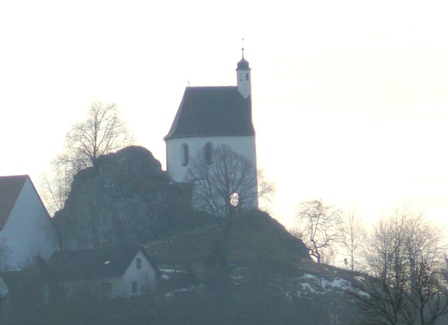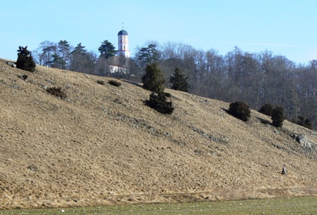 Wer lugt den da über den Berg? Die Kirche von Fronhofen! Zwischen Fronhofen und Untermagerbein