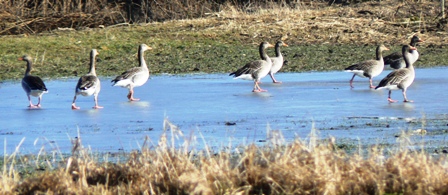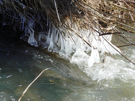 Wo kommen wir besser durch? Wir nehmen das rechte Ufer! Leider schon ziemlich marode, das Schloss der Freifrau von Bernus Auch Graugänse wagen sich mal aufs Eis