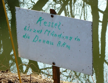 Runde 6 km fließt die Kessel am Ende entlang der Donau, z.T. in Altwasserarmen Donau-Kilometer 2511,2: Noch 100 Meter bis zur Kesselmündung, die wegen der Donaustaustufe eine künstliche ist. Auch die Kessel kann nicht bergauf fließen!