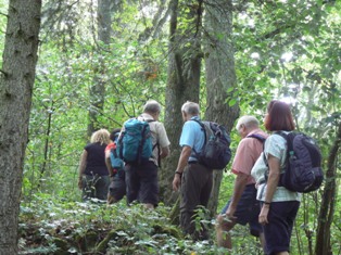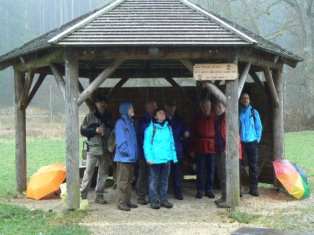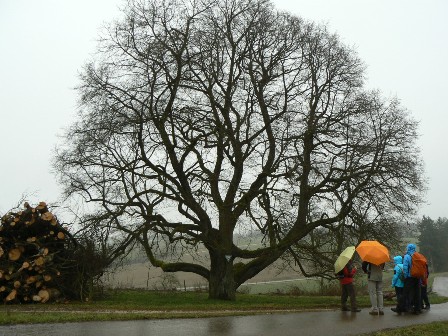 Rundwanderung ums Fohlenhaus: Leider hat Petrus den Aus-Knopf "Regenwetter" nicht gefunden. Dennoch war es eine schöne, wenn auch verregnete Wanderung vom Bernstadter Schützenhaus vorbei an alten Baumgestalten und den Heideflächen des Aglisburren zum Salzbühlfelsen. Ein Traumpfad am Waldrand entlang führte uns zum Fohlenhaus, wo endlich die Schutzhütte ihre Aufgabe so richtig erfüllen konnte. An der Lone entlang, dann das Eschental hoch bis in die Nähe von Neenstetten, das Trutteltal abwärts, eine mittelalterliche Fluchtburg und eine echte Burgruine am Weg, nachlassender Regen kann auch schön sein, so geht es zurück zum Schützenhaus.