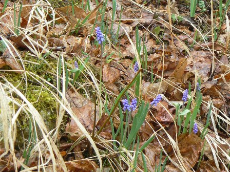 am Fohlenhaus Der Zinnoberrote Kelchbecherling, die Traubenhyazinthen,
