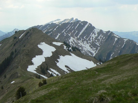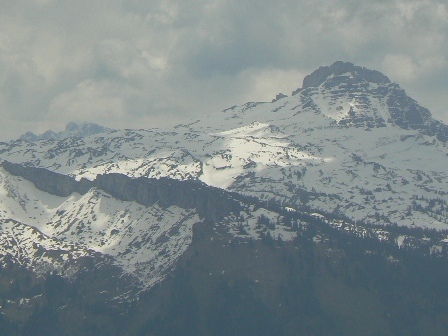 Blick zurück zum gestrigen Weg Rindalphorn Die lange Schneerinne in der linken Hälfte war ein Vergnügen
