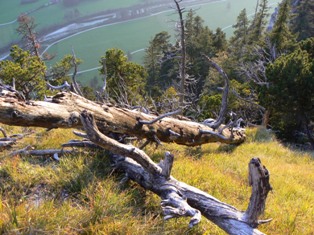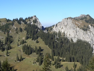 3. Tag: Sonntag, 2. Oktober 2011: Im Morgennebel zu Fuß von Hohenschwangau zur Tegelbergbahn (42 € haben wir für Tal- und Bergfahrt bezahlt!), und oben der nächste Hammer: Wir müssen Mineralwasser am Seilbahnkiosk kaufen, da es in Hohenschwangau keine einzige Einkaufsmöglichkeit für Wanderproviant gibt. Das kostet sage und schreibe 2 € für einen halben Liter Wasser, obwohl hier kein größerer Aufwand als an irgendeinem Bahnhofskiosk geleistet werden muss. Als wir dem Verkäufer nach dem Umfüllen die leeren Pfandflaschen zurückgeben wollen, weigert er sich, uns das Pfand auszuzahlen. Ein klarer Rechtsbruch! Die Anzeige an das Landratsamt Ostallgäu ist auf dem Weg! Dafür entschädigt uns der heutige Weg. Bald sind wir allein auf dem ehemaligen königlichen Reitweg über Ahornsattel, Niederer Straußbergsattel und Gabelschrofensattel. Argwöhnisch von Schneehühnern beäugt ersteigen wir die Krähe und auf ausgesetztem Weg anschließend den höchsten Punkt des Maximiliansweges, die Ammergauer Hochplatte (2082 m). Über eine interessante Karstlandschaft steigen wir zur Kenzenhütte ab. Ü: *Kenzenhütte