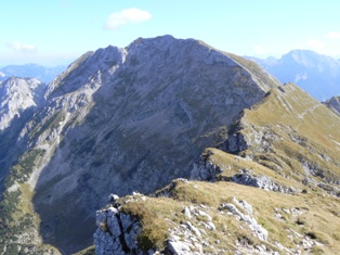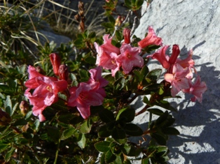 Ein steiler Zahn, die Krähe Hochplatte (2082 m) Hochgebirgskarst Alpenrose