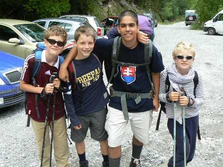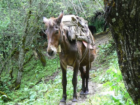 Nachwuchs-Bergsteiger beim Aufbruch in Prionia Mulis versorgen die Hütten Waldvögelein