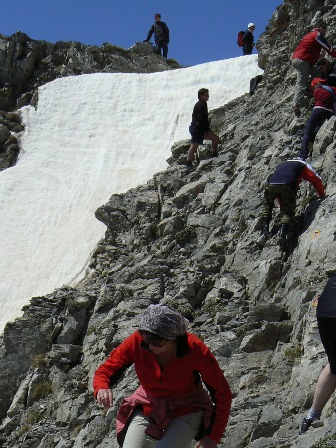Schneerutschen macht Spaß Die Olymp-Erstürmer - leider ohne Fotografin Jana