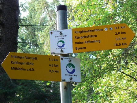 2. Tag: Mi, 2.9.09 Wanderung auf dem Donauberglandweg Fridingen - Burgsteig - Ziegelhütte - Ruine Kallenberg - Buttental - Bachtal - Eselstal - Schloss Bronnen - Jägerhaushöhle - Liebfrauental - Beuron (16 km) Ü: *Pelikan