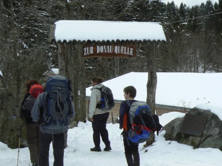Wo entspringt eigentlich die Donau? "Brigach und Breg bringen die Donau zu Weg", so lernen es die Kinder in der Schule - und in Donaueschingen gibt es einen Brunnen, der als Donauquelle bezeichnet wird... Die Geographen haben den Streit längst entschieden: Die Quelle der Breg ist die mündungsfernste Quelle und damit die richtige Donauquelle. Also beginnt unser Donauwanderweg hier an der Martinskapelle beim Kolmenhof. Aber leider gibt es keinen Fußweg direkt entlang der jungen Breg-Donau bis Furtwangen. Man könnte wohl über die Wiesen gehen, aber derzeit liegen über 20 cm nasser Schnee drauf und im Sommer würden sich die Bauern über zertrampelte Wiesen freuen. So wählen wir den Weg über den Brend, können aber wegen des Schnees nicht auf dem Wanderweg neben der Straße gehen. So wird der Weg nach Furtwangen weitgehend zu einem Asphalthatscher. Ab Furtwangen gehen wir meistens auf der ehemaligen Eisenbahntrasse und wundern uns oft über die Wegführung des Schwarzwaldvereins. Immer wieder finden wir aber bis Donaueschingen wanderbare Alternativen. Über die Baar ist der Weg fast nicht mehr wanderbar: Unendlich lange Asphaltwege mit vielen flurbereinigten rechten Winkeln zwingen uns zum jahreszeitbedingt möglichen Querwiesenwandern. Deutschland, deine Agrarautobahnen!