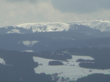 3. Tag: Ostersonntag, 4. April 2010: Hammereisenbach-Bregenbach verlassen wir auf der Dorfstraße, später auf einem Fußweg am südlichen Ortsrand entlang. Wir halten uns immer am Hangfuß und erreichen so bald den Bregtalweg auf der ehemaligen Eisenbahntrasse. Am Tierstein können wir brütende Wanderfalken beobachten, auch sonst ist der Weg sehr schön. Zeitweise gehen wir unterhalb des Hauptweges auf einem Naturwaldweg näher an der Breg. Umso größer der Schock, als unser Weg kurz vor Wolterdingen an einer Bogenschießanlage des Kyffhäuserbundes durch eine Riesenbaustelle unterbrochen wird. Da hat man doch tatsächlich Gewerbebetriebe und Sportanlagen in die Talaue gebaut und die Hochwassergefahr ignoriert. Jetzt müssen diese kapitalen Planungsfehler durch einen die Landschaft und die alten Wege völlig zerstörenden Dammbau kompensiert werden. Armes Deutschland, du hast immer noch zu viel Geld und zu wenig Hirn! An der Breg und am Gewerbegebiet entlang erreichen wir über die alte Bregbrücke den Ort und gehen rechts auf der Straße Richtung Donaueschingen. Etwa 600 m nach der Einmündung der Bregwerkstraße biegen wir rechts ab auf einen Schotterweg, der uns hangparallel in den Bruggener Wald führt. Nach 1,3 km im Wald wandern wir spitzwinklig links abbiegend den Berg hoch bis zur großen Wegkreuzung, hier rechts auf dem Panoramaweg / Baarblickweg zur Amalienhütte auf dem Schellenweg. Unsere Aussicht hält sich wegen rapider Wetterverschlechterung in Grenzen! Aber der Blick über die Baar ist dennoch eindrucksvoll - und Donaueschingen eine Stadtbesichtigung wert! Ü: Hotel Linde
