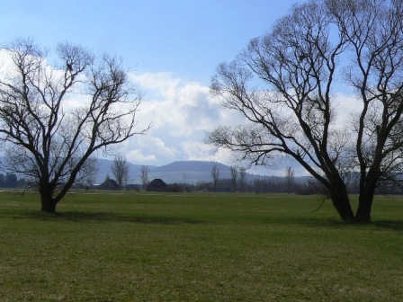 4. Tag: Ostermontag, 5. April 2010: Durch den Schlosspark gehen wir zum Zusammenfluss von Brigach und Breg (die bringen die Donau zuweg!) und weiter auf dem Donau-Radweg, leider fast nur auf Asphalt, durch die Baar, wo sich die junge Donau durch eine Wiesenlandschaft Richtung Schwäbische Alb schlängelt. Wir kürzen die rechten Agrarautobahnwinkel quer über die Wiesen gehend ab und erreichen so guten Fußes Pfohren, wo die Störche beim Nestbau sind. Immer den Radweg als Orientierung und die Wiesen so gut es geht als Fußweg nutzend und abkürzend kommen wir an Neudingen vorbei zur B 31, die wir unterqueren. Am Waldrand des Ritterstiegs, dann links durch eine Schneise im Wald, danach rechts auf dem Fahrweg steigen wir zum Wartenberg (844 m) hoch, genießen die Aussicht und wandern der Markierung nach hinunter nach Geisingen, wo wir noch im Donaustüble einkehren, ehe uns die Bahn in die Heimat zurückbringt.