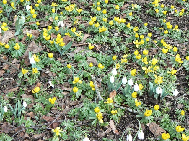 Winterling und Schneeglöckchen am Leutkircher Bahnhof Laut Topographischer Karte die Quelle der Rot Aber oberhalb fließt noch Wasser im Graben!