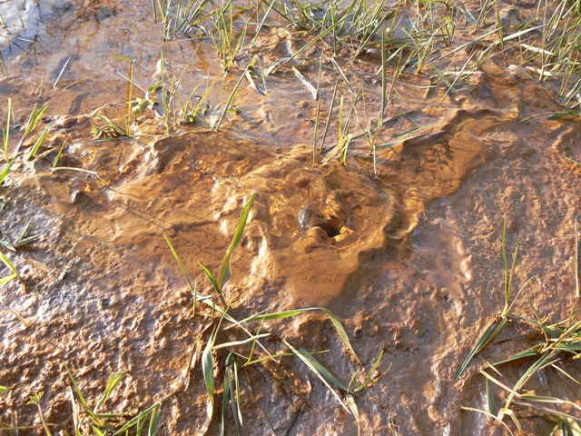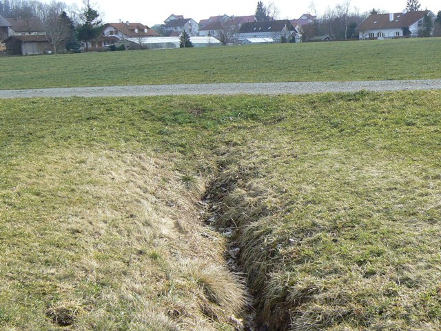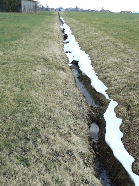 Ist es nur der schmelzende Schnee? Nein, hier am Ortsrand von Seibranz drückt das Wasser aus dem Boden, aber erst im Wald gibt es einen richtigen Bach!