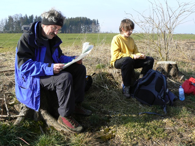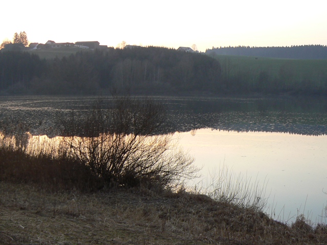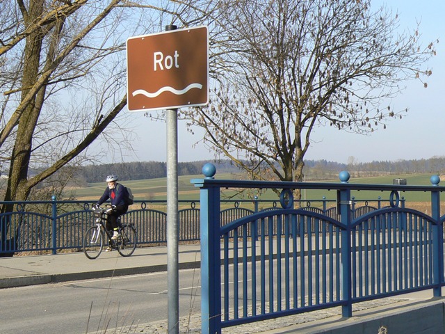 1. Tag: Rosenmontag, 19. Februar 2007: Kann das sein: Strahlend blauer Himmel, Frühlingsblumen blühen - und es ist Rosenmontag. Die Bahn bringt uns ausnahmsweise zuverlässig nach Leutkirch, wo wir leider in den falschen Bus steigen. Montags wäre eine "Marktlinie" der Firma Waibel direkt nach Seibranz gefahren. So werden wir gemütlich in die Narrenhochburg Bad Wurzach kutschiert. Mit dem Taxi geht es weiter nach Seibranz, wo die Rot als Pfaffenrieder Bach am nördlichen Ortsrand in 743 m Höhe auf dem Scheitel einer würmeiszeitlichen Moräne als Entwässerungsgraben einer moorigen Wiese entspringt. Drainagerohre und Entwässerungsgräben sind für einige Zeit die einzigen Zuflüsse. Erst im Stadtwald Wengenreute wir die Rot zum Bach - und bald darauf zum See. Sie muss gleich darauf 4 Straßen nacheinander unterqueren, ehe sie als gemütlicher Wiesenbach durch kleine Wälder und das liebliche Rupprechtser Tal mäandriert. In Rupprechts dann die erste Mühle, heute nur noch ein etwas altertümliches Kleinwasserkraftwerk, dafür aber mit einem ehemaligen Müller, der Geschichte und Geschichten erzählen kann (Literaturhinweis: Högerle, Gebhard: Die Rot und ihr Tal). Bald wird der Stausee bei Mühlberg/Konradsweiler erreicht, ein misslungenes Naherholungsprojekt. Die freundlichen Wirtsleute der * Linde, unseres Quartiers in Rot an der Rot, holen uns mit dem Auto vom riesigen, völlig zugewachsenen Parkplatz ab. [14,5 km]