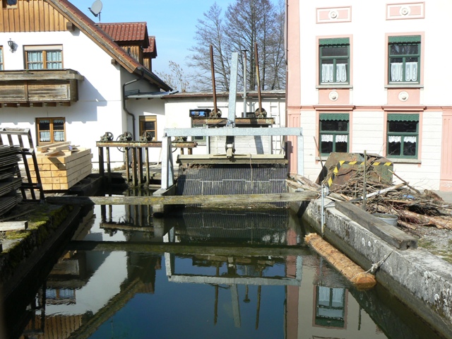 Unordnung am Holzwerk Schilling. Erst das Hochwasser räumt etwas auf Jugendstiltraum Grabenmühle