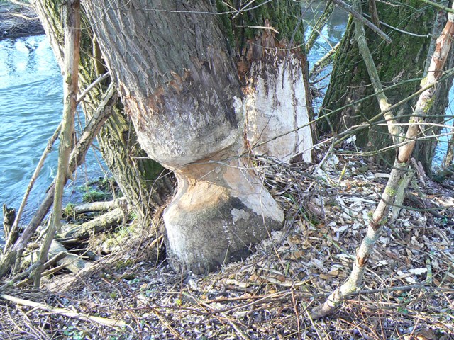 Biberhafen So sieht eine vom Biber verjüngte Weide aus Naturlandschaft an der Rot