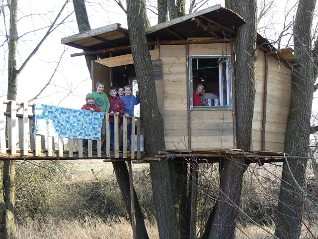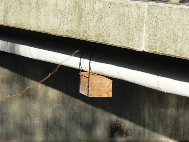 Die Baumvilla in Rot und die Wasseramselvilla unter der Brücke Endlich beginnt der Gewässerrandstreifen