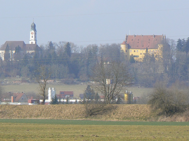 Rückblick nach Dellmensingen Kirche und Schloss Erbach Rot-Unterführung unter dem Stausee hindurch