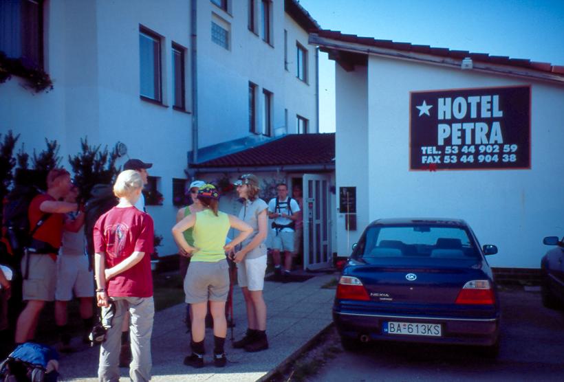 Heute wandern wir auf dem Hauptkamm der Niederen Tatra, auf dem Europäischen Fernwanderweg 8, dem E8 hinüber zur einzigen Pass-Straße, welche die Niedere Tatra quert, dem sedlo Čertovica. Wir rasten inmitten von Karthäusernelken, Petrus quält uns erst am Ende - und da laben wir uns gleich auf der Passhöhe an slowakischen Spezialitäten. Der Bus nach Poprad fährt um 15.50 Uhr ab, von dort geht es leider erst um 18.25 Uhr weiter nach Hrabušice am Rande des Slowakischen Paradieses, wo wir im Hotel Petra ein sehr gutes Quartier finden.