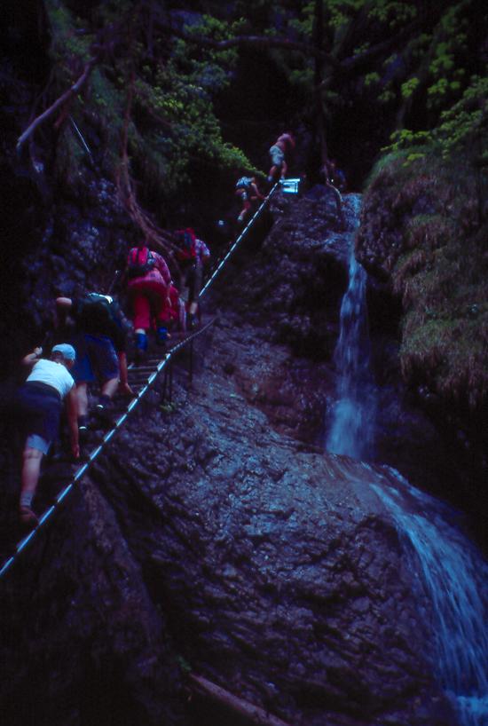 Der Bus ins Paradies bringt uns um 9 Uhr auf Umwegen nach Podlesok, dem Ausgangspunkt für die Wanderung durch die wildromantische Schlucht Suchá Belá. Auf Alu- und Holzleitern, im oder neben dem Bach steigen wir über 400 Höhenmeter hinauf zur Bergwiese Glac-Malé Pol'ana, die zur ausgiebigen Rast einlädt. Bei schwülem Wetter sind Menschenmassen unterwegs, vor allem um die Klosterruine Kláštorisko ist die Hölle los. Über Hrdlo Hornádu und einen direkten Feldweg erreichen wir unser Hotel Petra in Hrabušice.