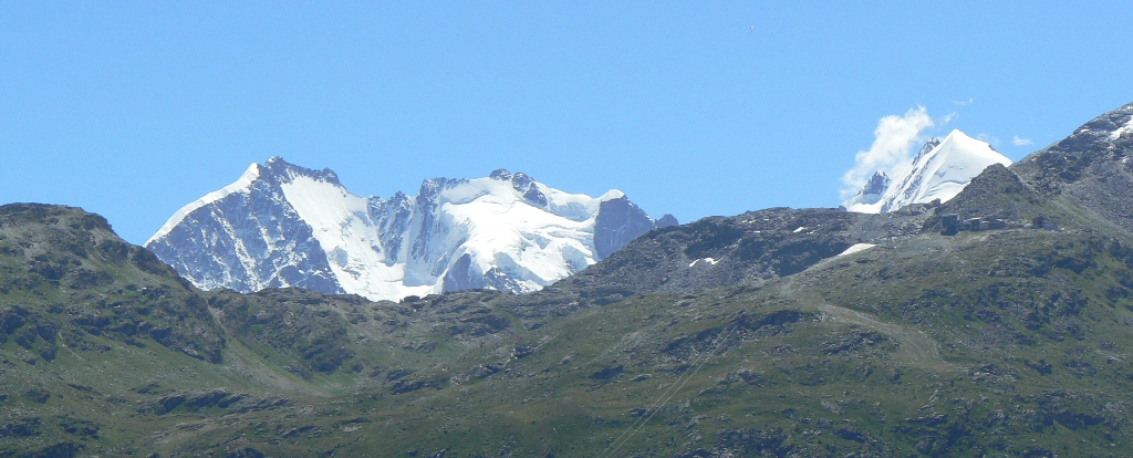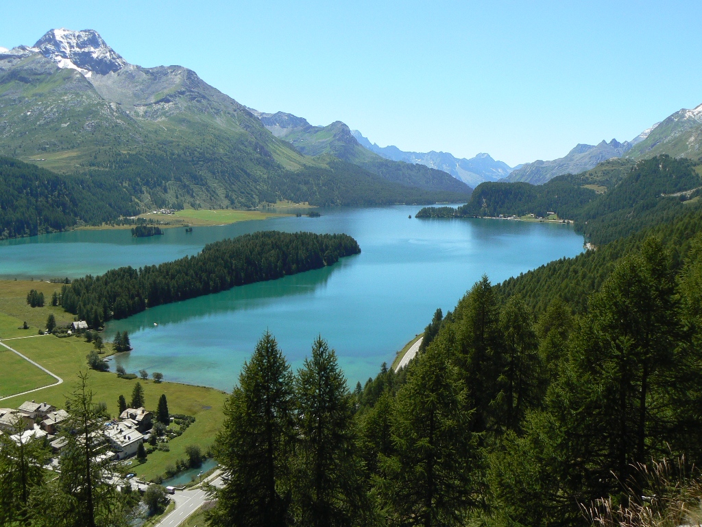 Schönstes Wanderwetter! Wieder hoch zum Pfad und am Hang entlang. Sils, der Silser See und der Piz de la Margna verschwinden allmählich aus unserem Blickfeld, dafür leuchtet jetzt unten der Silvaplaner See herauf, gegenüber thront der Piz Corvatsch und über der Fuorcla Surlej lugt der Piz Bernina (4049 m hoch) mit seinem Biancograt hervor. Unser Pfad verläuft bald auf der Trasse der alten Römerstraße ins Vallun-Tal, das zum Julierpass hochführt. Nach der Querung der Passstraße beginnt ein wahres Blumenparadies mit einem Artenreichtum, der auch im Alpenraum nicht oft zu finden ist. Im Suvrettatal könnte man durch das illustre Villenviertel nach St. Moritz absteigen, leider auf viel Asphalt und bedrängt von Mountainbike-Abfahrern. Deshalb ist es besser, im Val Suvretta hoch zur Alp Suvretta zu gehen und weiter zur Bergstation der Signalbahn, mit der man die Knie schonend nach St. Moritz-Bad „absteigen“ kann.