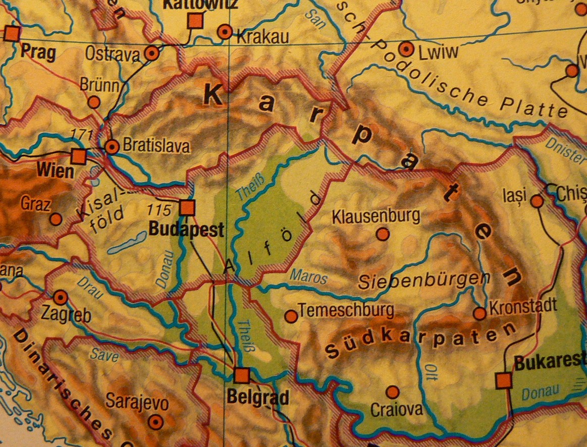Karte der Karpaten - von der Donau bei Preßburg/Bratislava bis zur Donau am
