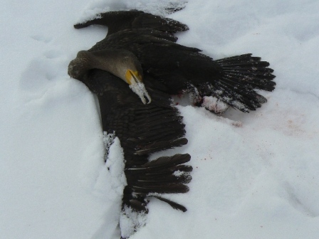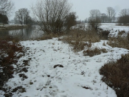 Die Sonne gewinnt, aber die Wächten an der Zusam sind mächtig Der Fuchs war nicht der Täter, eine Kugel war's. Der Todeskampf des Kormorans war im Schnee zu lesen