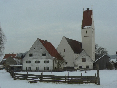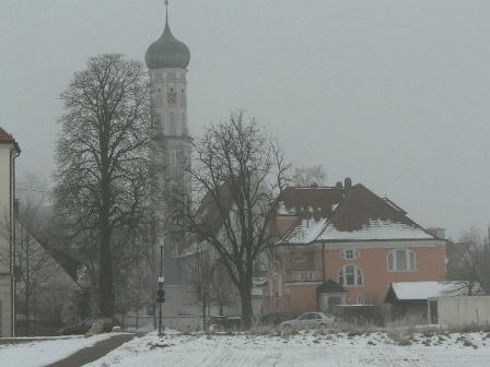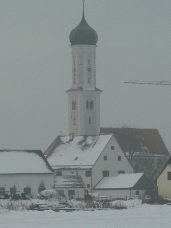 Der schiefe Turm von Obergesserthausen Eisspiele in der Zusam