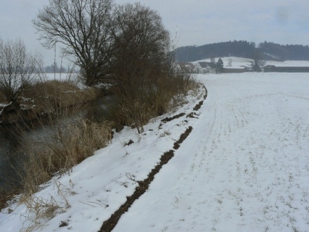 Jetzt wird die Zusam zum Kanal durch eine bereinigte Feldflur, aber wenigstens meistens mit einem Begleitweg